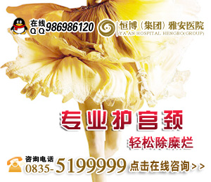 温馨提醒:以上是关于宫颈糜烂有哪些症状的介绍,如果您想了解更多的问题或者您有就医的需要,可与在线咨询医生进行进一步的沟通。医院还开展了在线咨询,雅安恒博医院【 QQ咨询:800078965】 医院地址:雅安市雨城区北二路(旅游车站旁),雅安恒博医院祝你幸福健康!