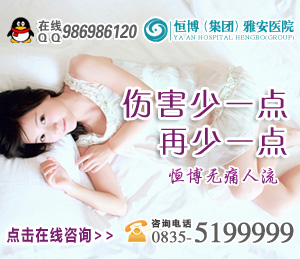 温馨提醒:以上是关于人流手术前必须要做哪些检查的介绍,如果您想了解更多的问题或者您有就医的需要,可与在线咨询专家进行进一步的沟通。医院还开展了在线咨询,恒博集团雅安医院【QQ咨询:986986120】 医院地址:雅安市雨城区北二路(旅游车站旁),恒博集团雅安医院祝你幸福健康!