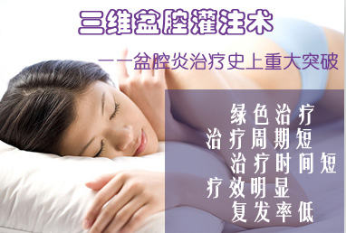 三维盆腔灌注:就是直接将yao物灌注到患者的盆腔里,患者避开月经期,医生通过下腹常规穿刺点穿刺进入腹腔,将yao物注射进盆腔,使yao物直接作用于病灶,大大提高了效果。