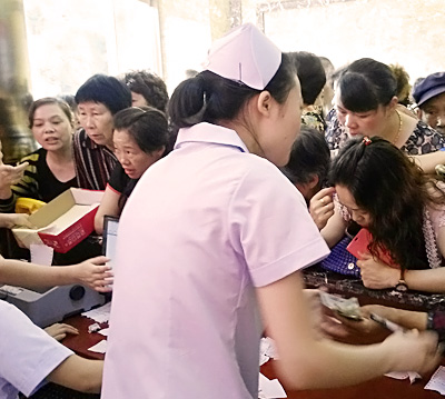 由于前来检查、就诊的患者很多,我院的医护人员都非常忙碌,为患者送去贴心的服务,让患者满怀希望而来,高高兴兴而去。