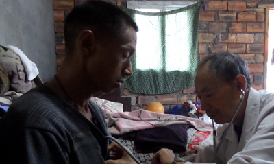 活动现场,雅安北二路恒博医院医生为中里龙泉村村民量血压、检查身体并且耐心为村民解答疑问。即使天空还飘着绵绵细雨,前来做健康检查的村民却络绎不。