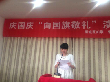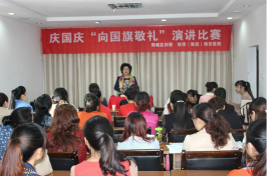 就在国庆佳节来临之际,为庆祝新中国成立65周年,更好地激发广大职工爱岗敬业的工作热情,雨城区妇联携手雅安恒博医院共同开展了庆国庆“向国庆敬礼”演讲比赛活动,参赛的选手们结合自身的工作岗位讲述了自己的人生出彩之梦,用朴实而坚定的语言诠释了对祖国的热爱。