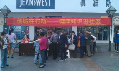 在2014年度雅安市创建省级文明城市的大目标下,为进一步提高我区市民文明素质,激发大家投身文明城市建设活动的热情。10月6日,雨城区妇联联合雅安恒博医院吉选超市外开展了以“创城在行动——健康知识进社区”为主题的创建文明城市宣传义诊活动。短短的半小时,前来义诊的市民就有40多人,发放宣传资料近200多份。