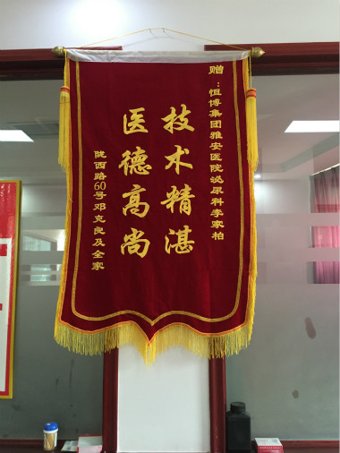 在一个晴空万里的日子,出院没几天的邓老在家人的陪伴下,又回到了雅安恒博医院,但是这次邓老来医院,并不是为了看病,而是送锦旗表谢意来了。邓老表示,很感谢恒博医院李主任帮助我摆脱了那么多年的痛苦,现在终于可以享享清福了。