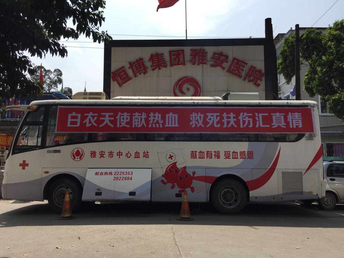 2015年4月2日下午,雅安市中心血站献血车缓缓的停靠在恒博(集团)雅安医院的一侧,原来每年冬夏两季都是临床用血的高峰期,为了响应血液中心的号召,弘扬“仁爱、人道、奉献、和谐”为内涵的无偿献血文化,缓解临床用血供需的紧张局面,恒博医院自发组织本院员工无偿献血。