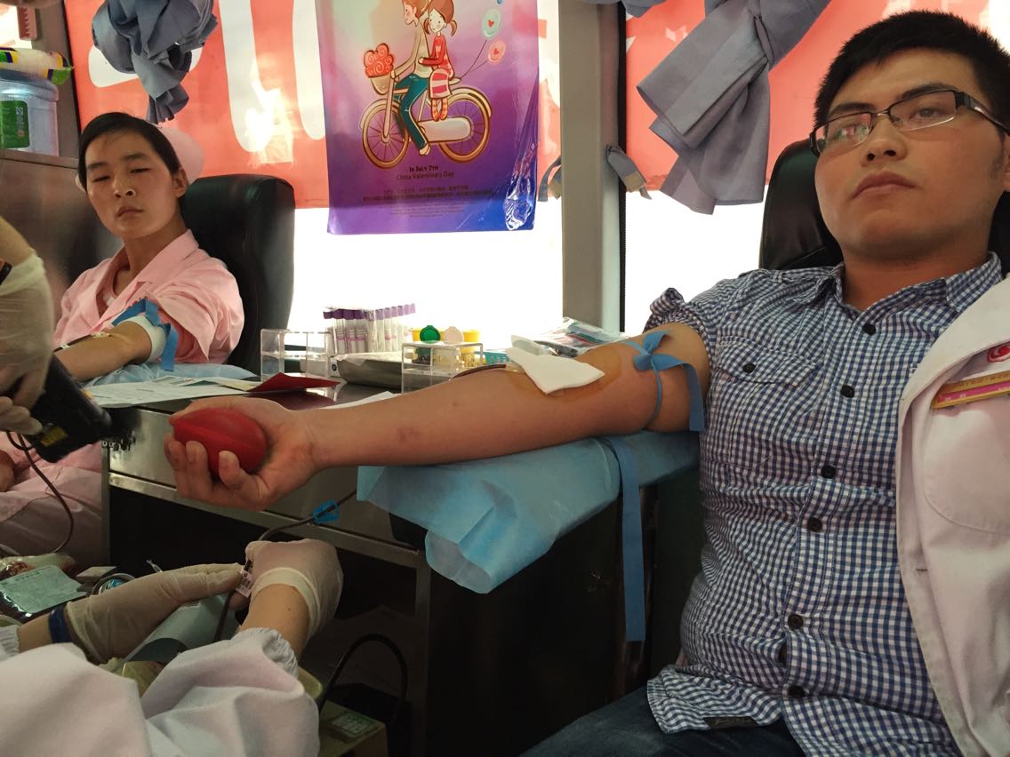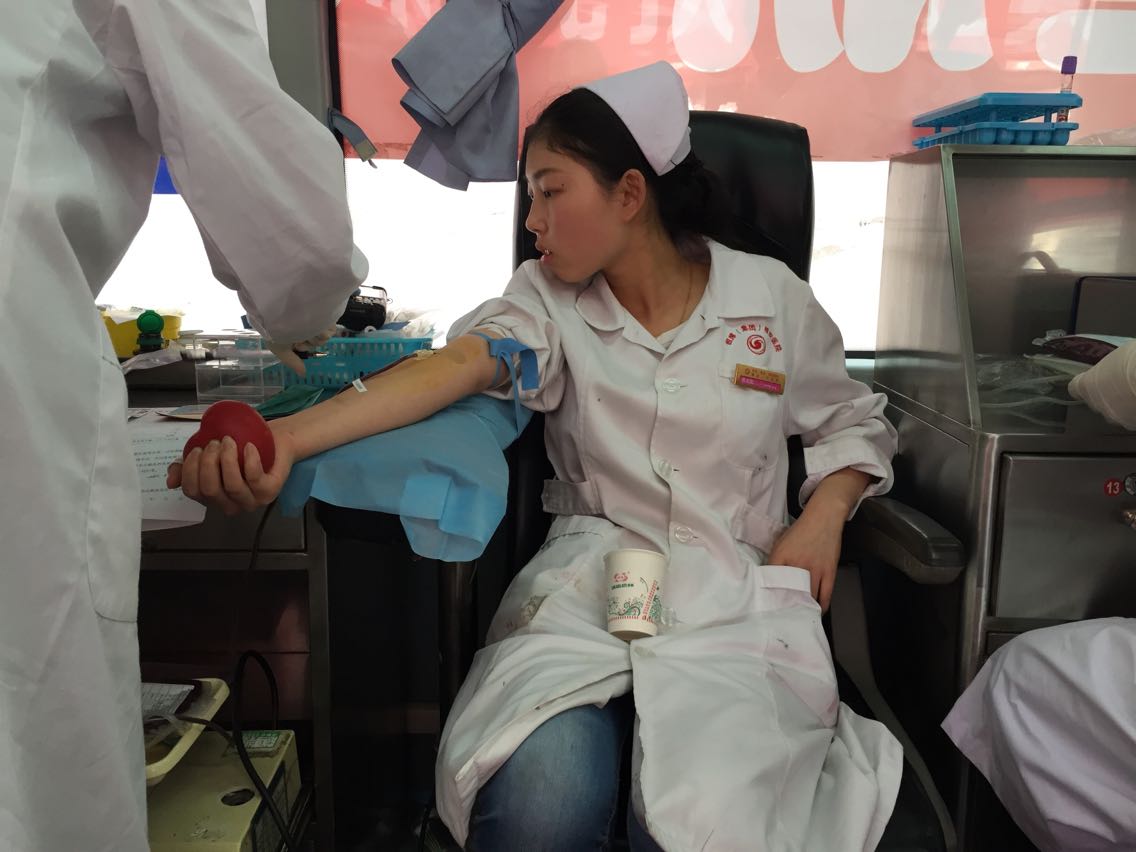 在献血活动现场,医生护士们依次填表、检查、献血,多次献过血的人还对初次献血有些紧张的同事给予鼓励、指导,现场秩序井然、欢乐祥和、积极踊跃。大家都认为无偿献血活动是一项非常有意义的活动,是为无数亟待用血、生命垂危患者伸出援助之手。鲜红的义务献血证映出每一位参与义务献血的医务人员临危受命、救死扶伤的高尚情操和每一位献血者的大仁博爱,大义奉献的高尚品德。
