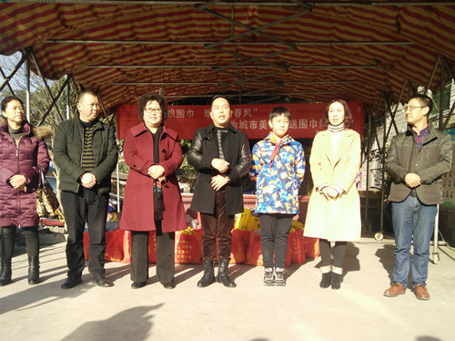 我院黄院长与王主席及爱心人士一起分发围巾