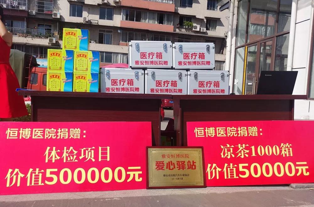 雅安恒博医院1000箱凉茶+价值500000元体检项目捐赠仪式。