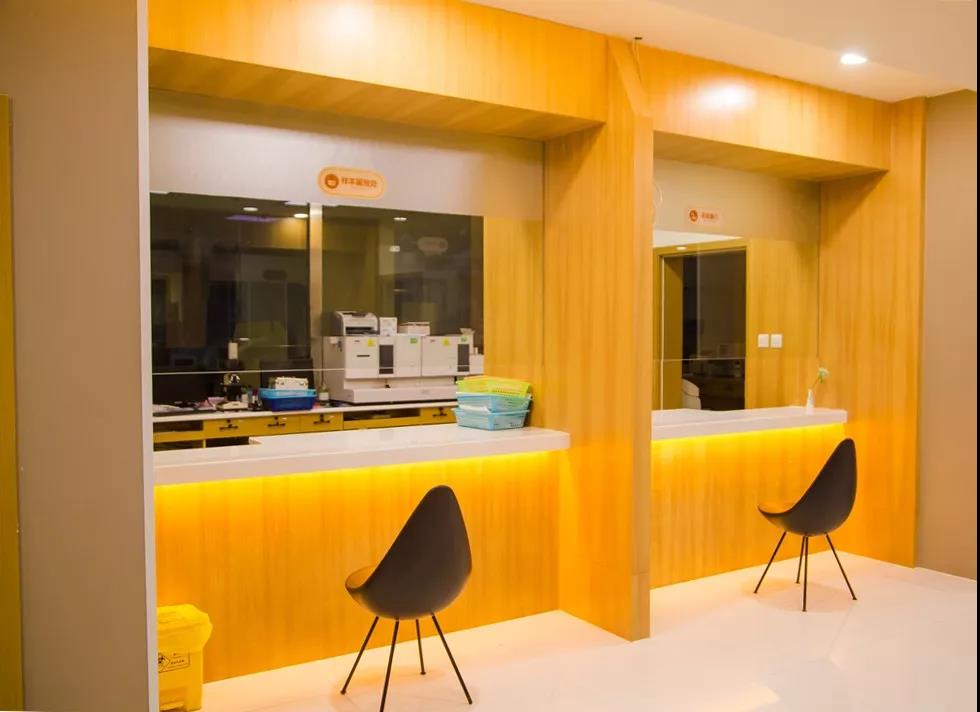 休息区旁边是检验科。雅安妇产医院检验科,检验设备和用材全部按照三甲医院的标准配备。