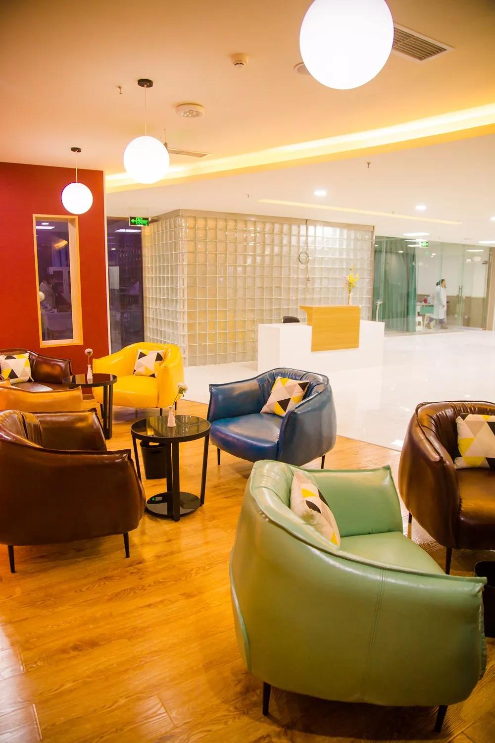 二楼同样配有休息区。宽敞的环境,彩色的沙发、座椅...医院专门选用皮质沙发,坐起来既舒适,又能缓解等待疲惫。