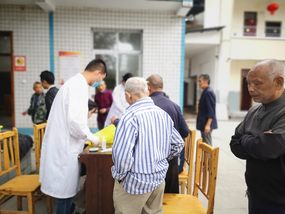 量血压、测血糖......一一为他们做好记录,并且提醒检查结果不理想的老年朋友们要多多注意。