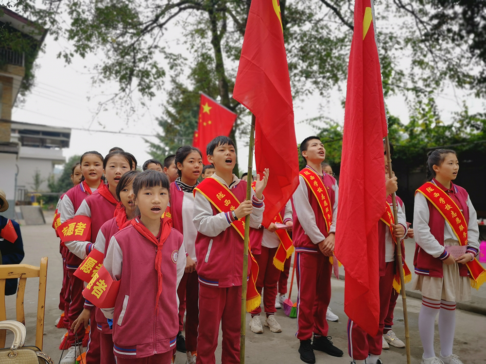 北郊镇中心校的同学们带领大家齐唱《我和我的祖国》