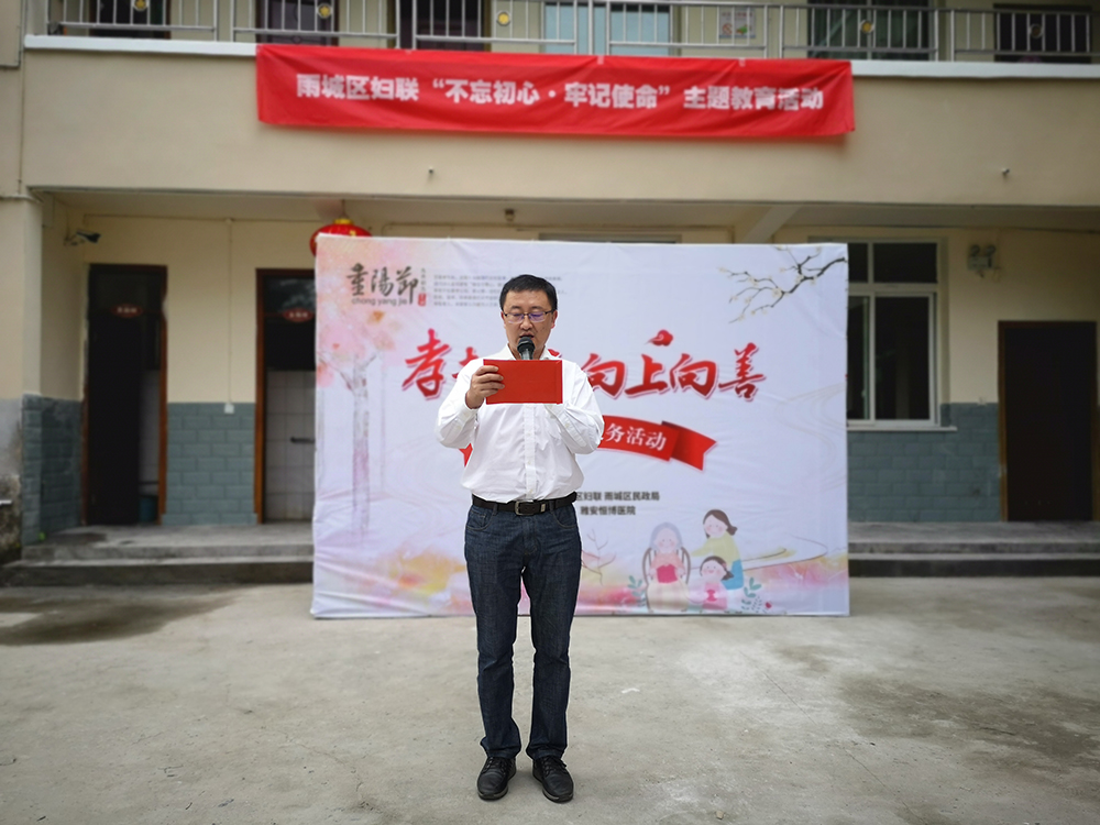 活动上,雨城区妇联、区民政局、雅安恒博医院领导一一致辞,表达对老年朋友的关怀慰问之情。