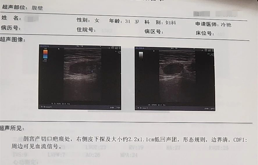 因考虑到朋友的痛感主要集中在剖宫产疤痕处,业务副院长冷艳主任医师接诊后,很快在朋友剖宫产疤痕旁,摸到约