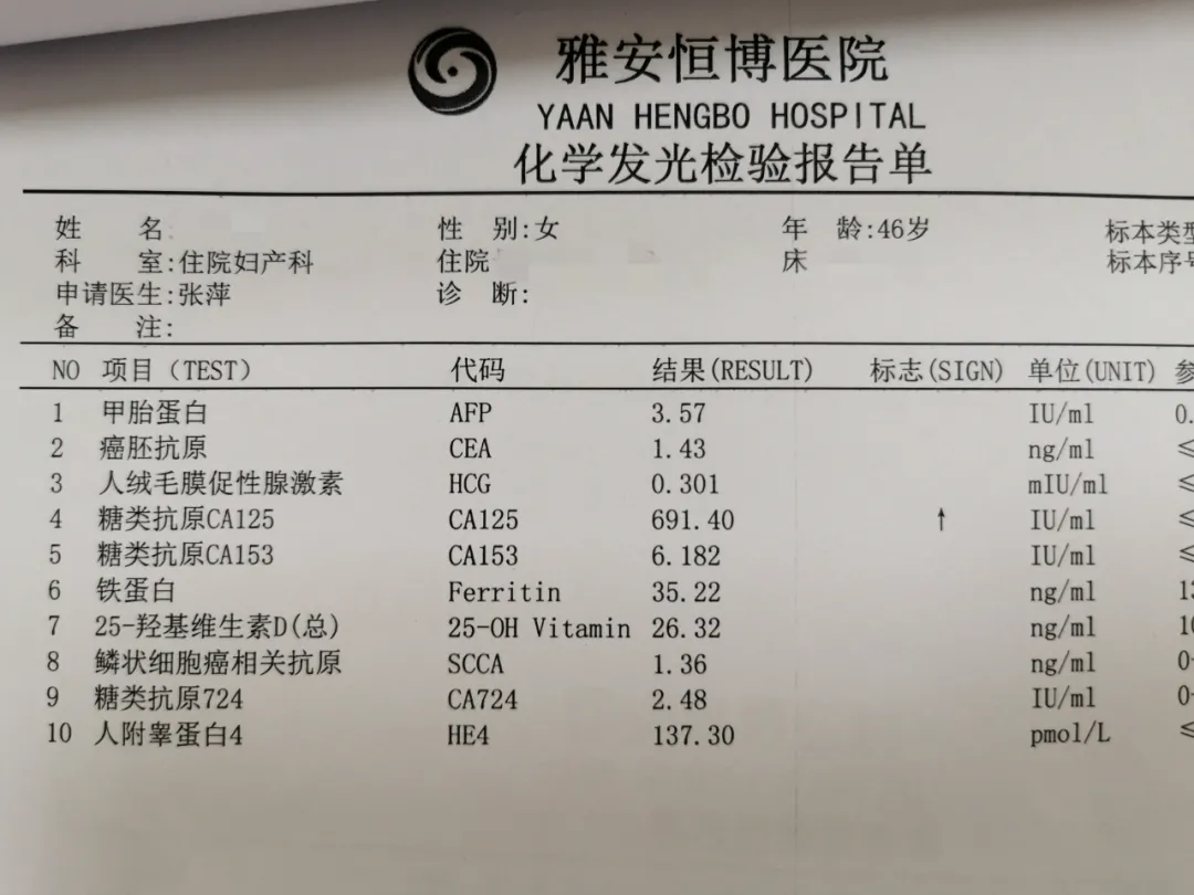 高危人群建议每年进行一次妇科检查+血清CA125检测。